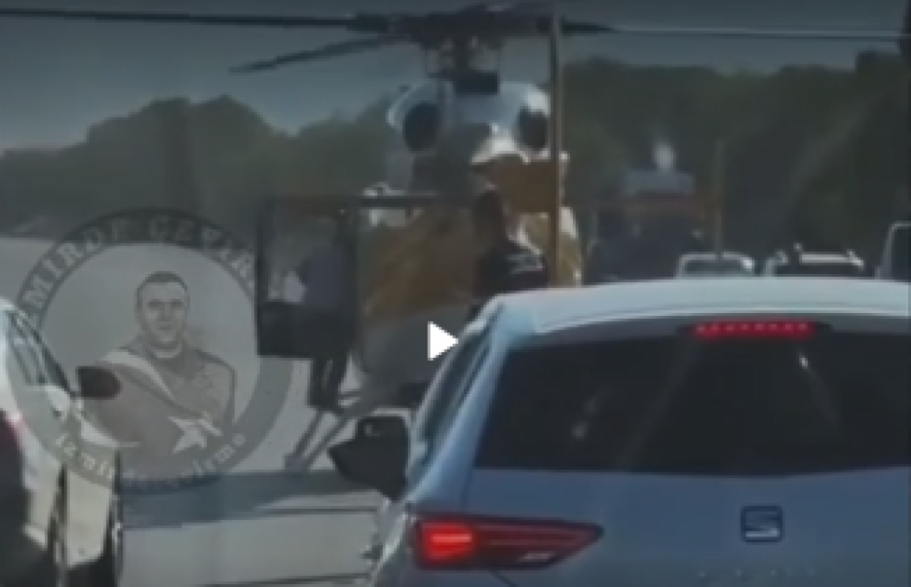 İzmir'de trafiğin ortasına inen gizemli helikopter, bir kişiyi alıp uzaklaştı