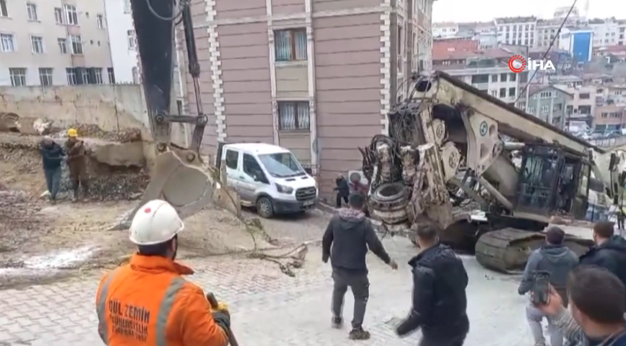 İstanbul Kağıthane'de kepçe ile inşaat alanına çekilen 200 tonluk iş makinesi, zincir kopması sonucu yokuş aşağı kaydı.• 2 kişi yaralanırken, araçlarda maddi hasar meydana geldi.