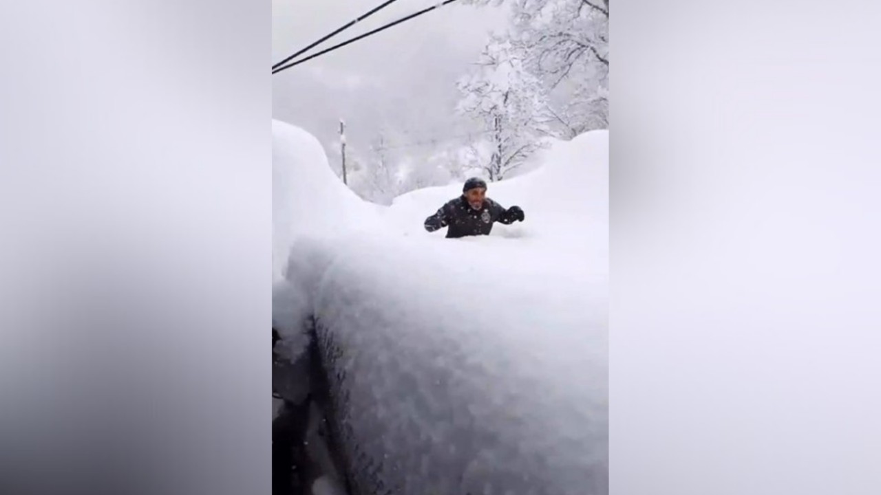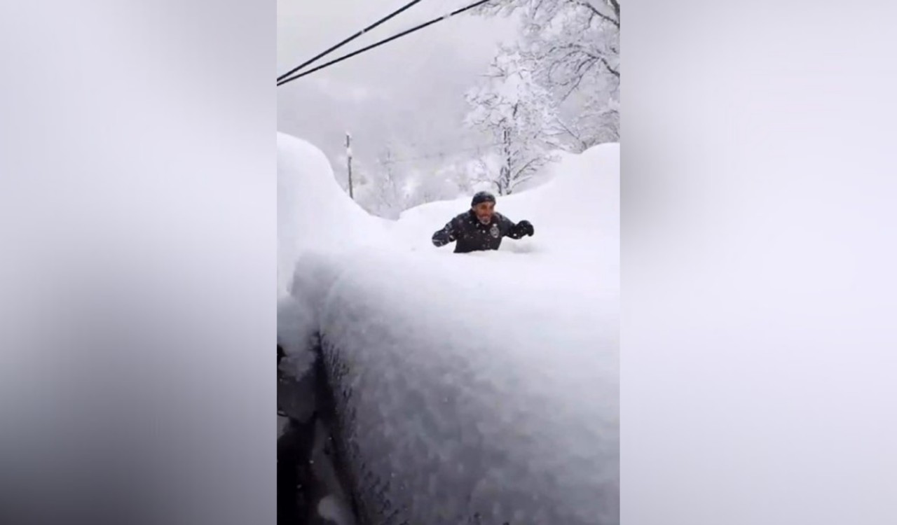 Kastamonu’nun Çatalzeytin ilçesinde bir vatandaş, 2 metre kalınlıktaki karda yürüyemeyince yüzerek evine gitmeye çalıştı. Eşi tarafından çekilen o görüntüler, sosyal medyada büyük beğeni aldı.