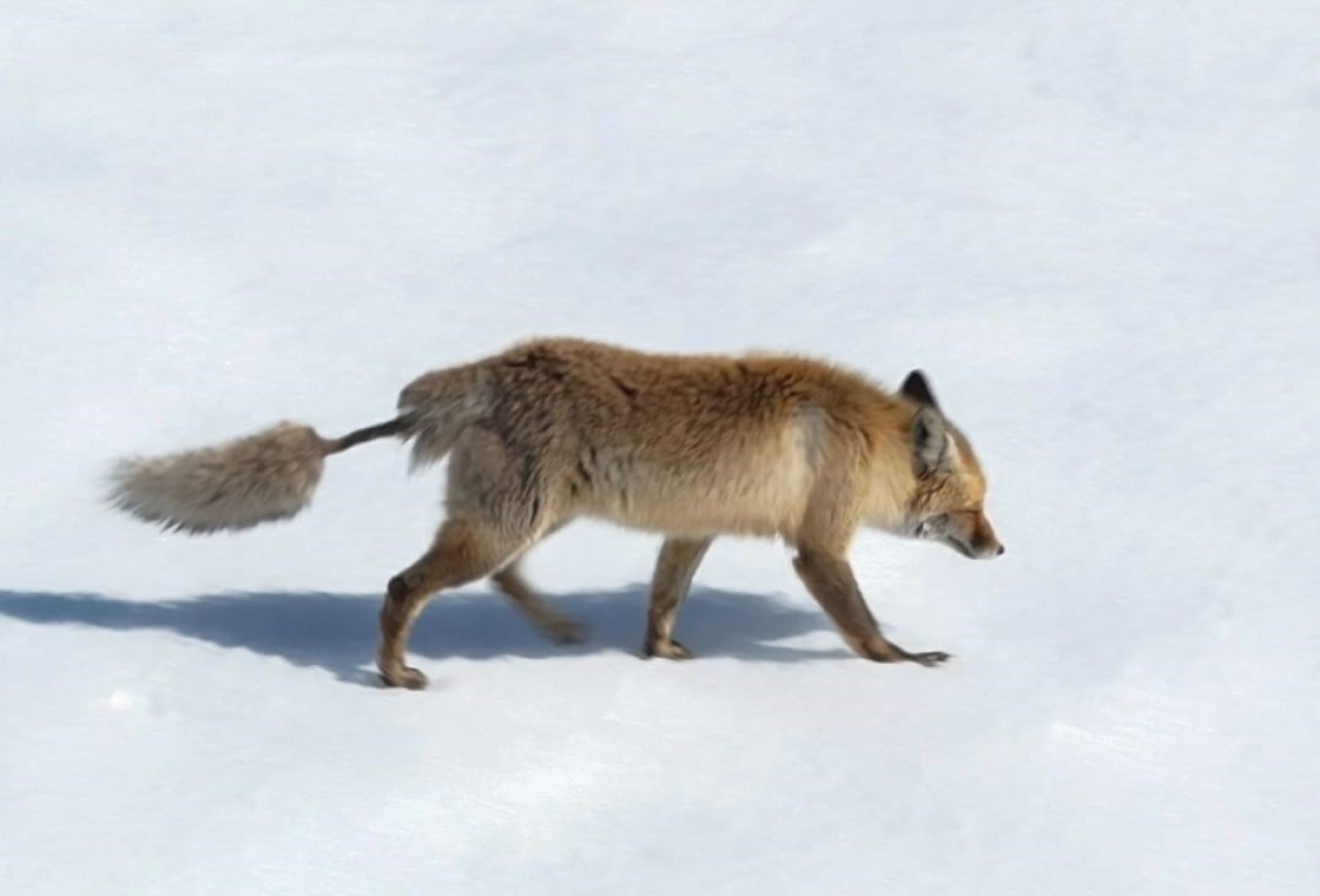 Kızıl tilki ilginç kuyruğu ile dikkat çekti