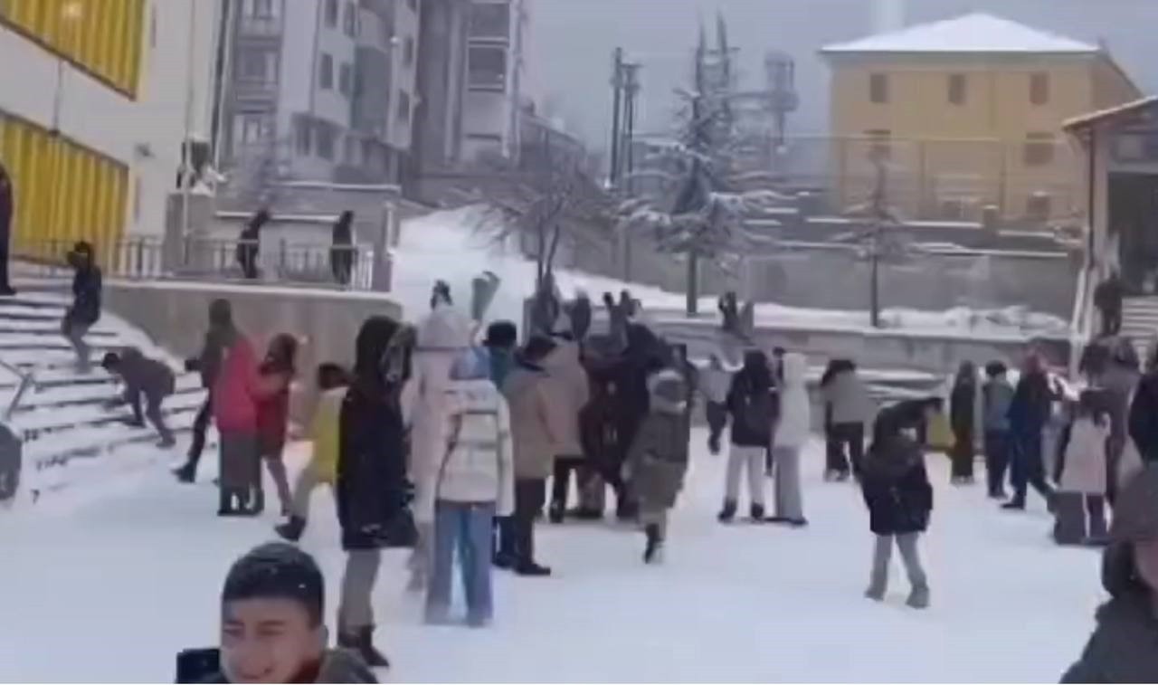 Öğrenciler okul müdürünün sürpriz anonsuyla kar topu oynamaya çıktı