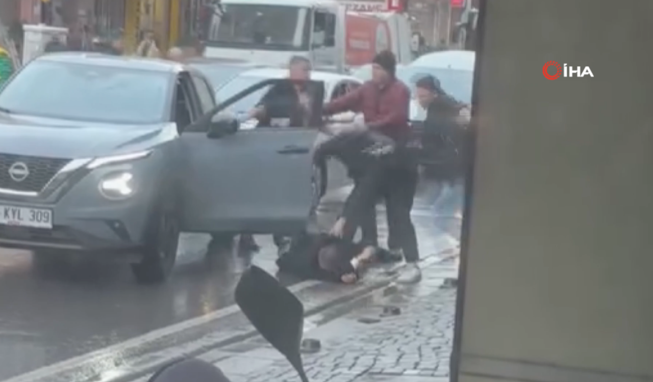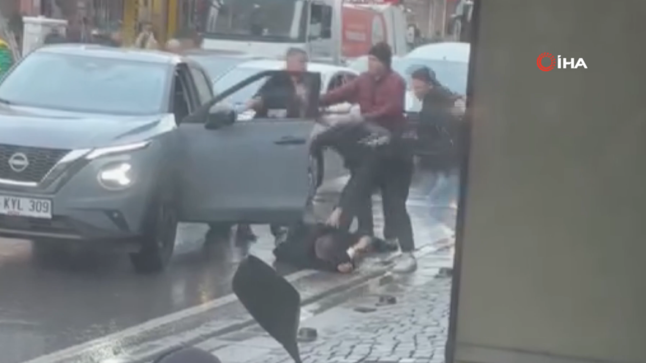Ümraniye’de park yeri yüzünden çıkan kavgada 3 kişi sürücüyü tekme ve yumruklarla darp etti. O anlar cep telefonu kamerasına yansıdı.