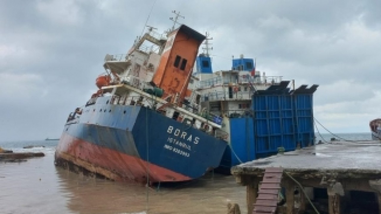 Ortadoğu Gazetesi Videolar GÜNDEM Sürüklenen gemi kıyıdaki gemiye çarparak durabildi