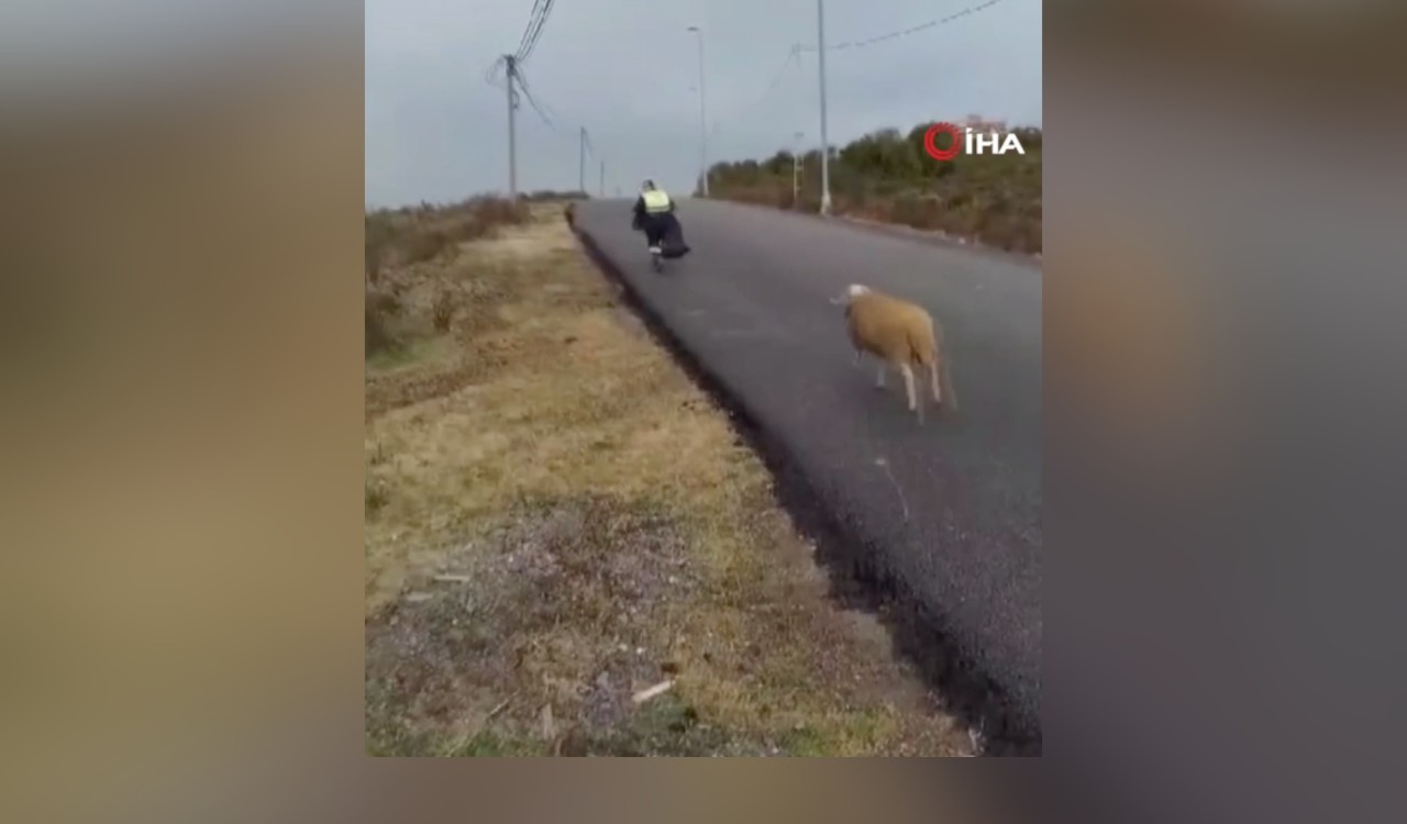 Beykoz’da temizlik yapan işçiler, kendilerini kovalayan koç yüzünden zor anlar yaşadı. Yüzleri gülümseten o anlar cep telefonu kamerasına yansıdı.