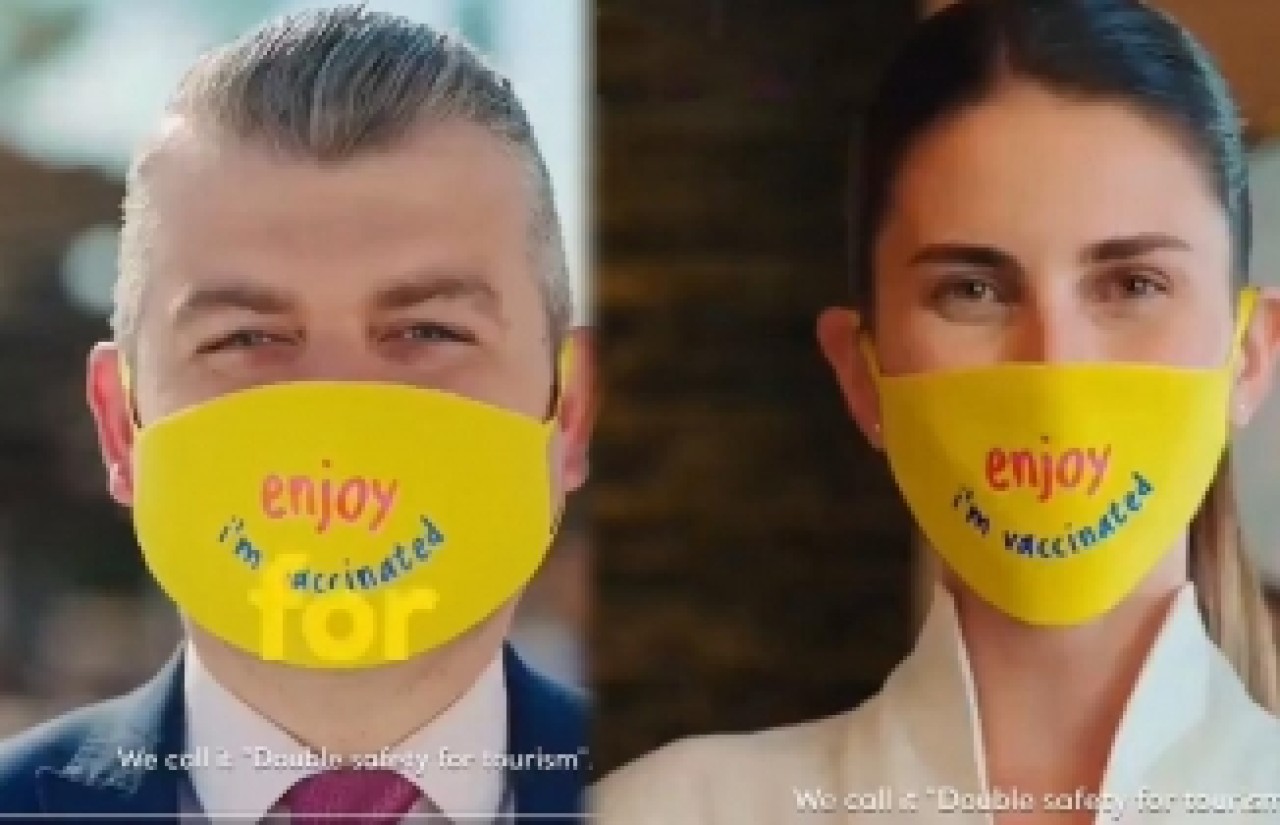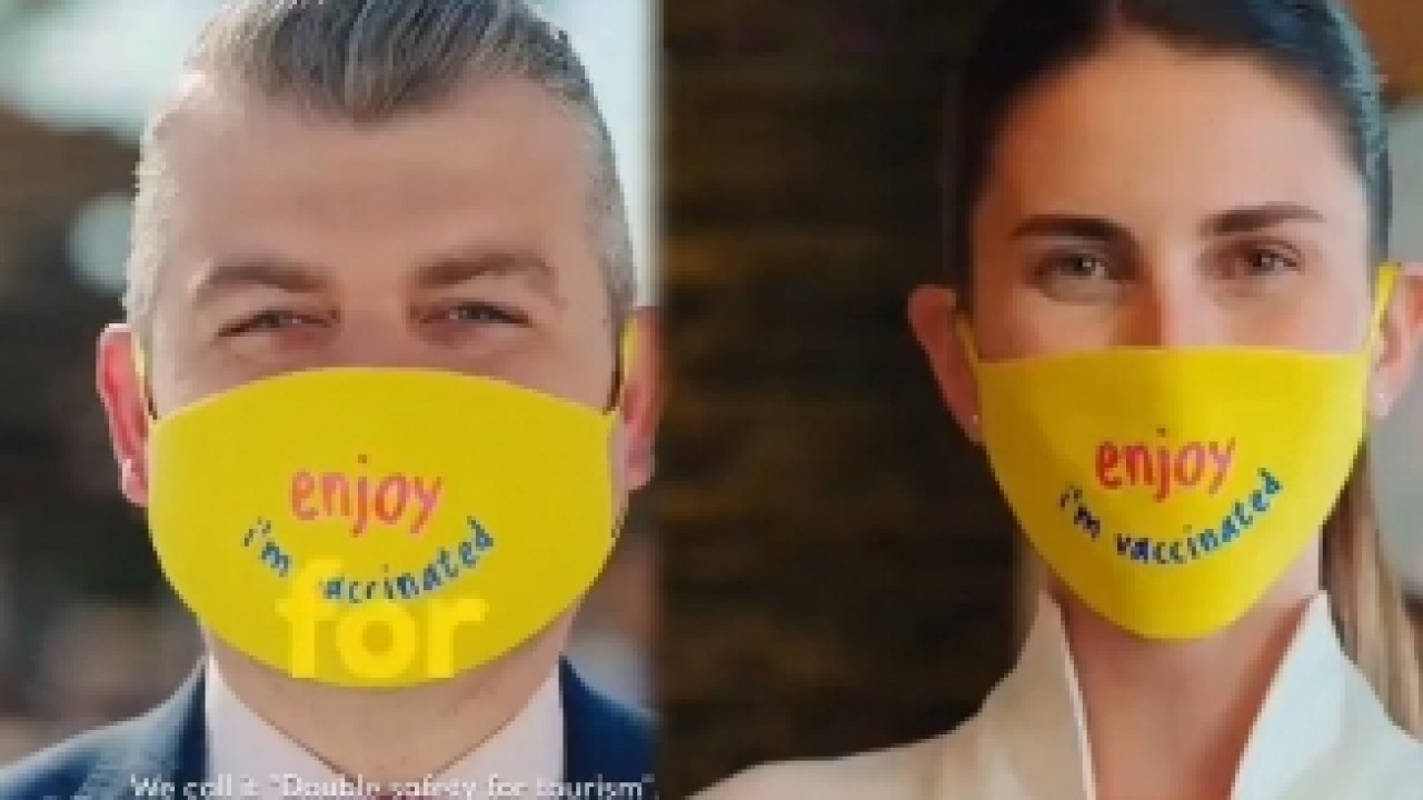 Turizm çalışanları için hazırlanan 'Keyfine bak, aşılıyım' yazılı maskelerin yer aldığı Bakanlık videosu tepki topladı