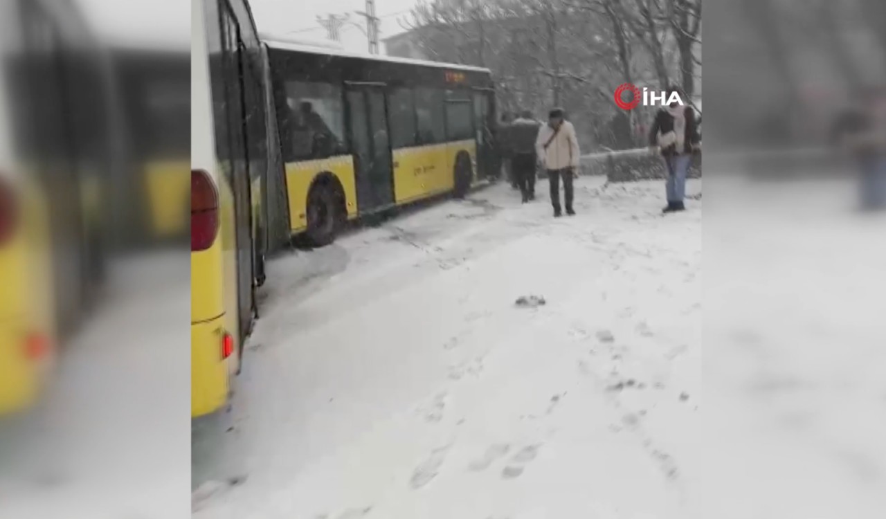 Başakşehir’de etkili olan kar yağışı nedeniyle yolda kalan İETT otobüsü, vatandaşların ittiği sırada kontrolden çıkarak ağaca çarptı. Araçta hasar oluştuğu öğrenildi.