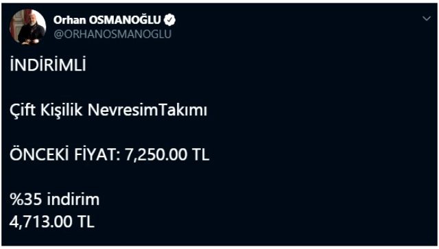 Öte yandan Orhan Osmanoğlu daha önce de resmi sosyal medyada hesabından indirimli nevresim takımı reklamı paylaşmıştı.