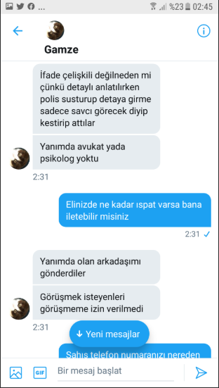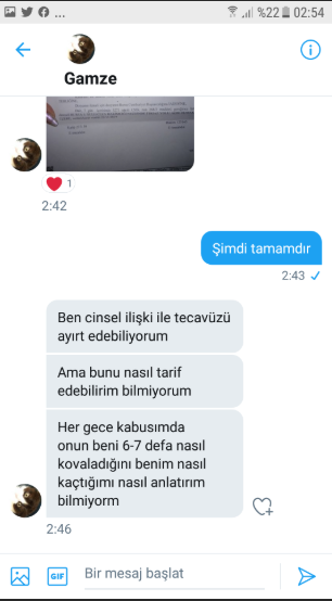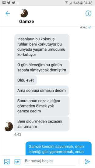 Tecavüz zanlısı Yunus Emre Çakır'ın Gamze'ye attığı mesaj;