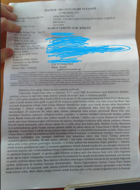 Raporda meni ve darp izleri olmasına rağmen üst mahkeme tarafından salınan Yunus Emre Çakır'ın tutuklanması için sesini duyurmaya çalışan genç kadının arkadaşı da "Ben gamzenin en yakın arkadaşıyım 6 kasımdan beri o pislik dışarda lütfen çağrımızı duyun sesimizi duyun dostumun artık korkarak yaşamasını istemiyorum" dedi.