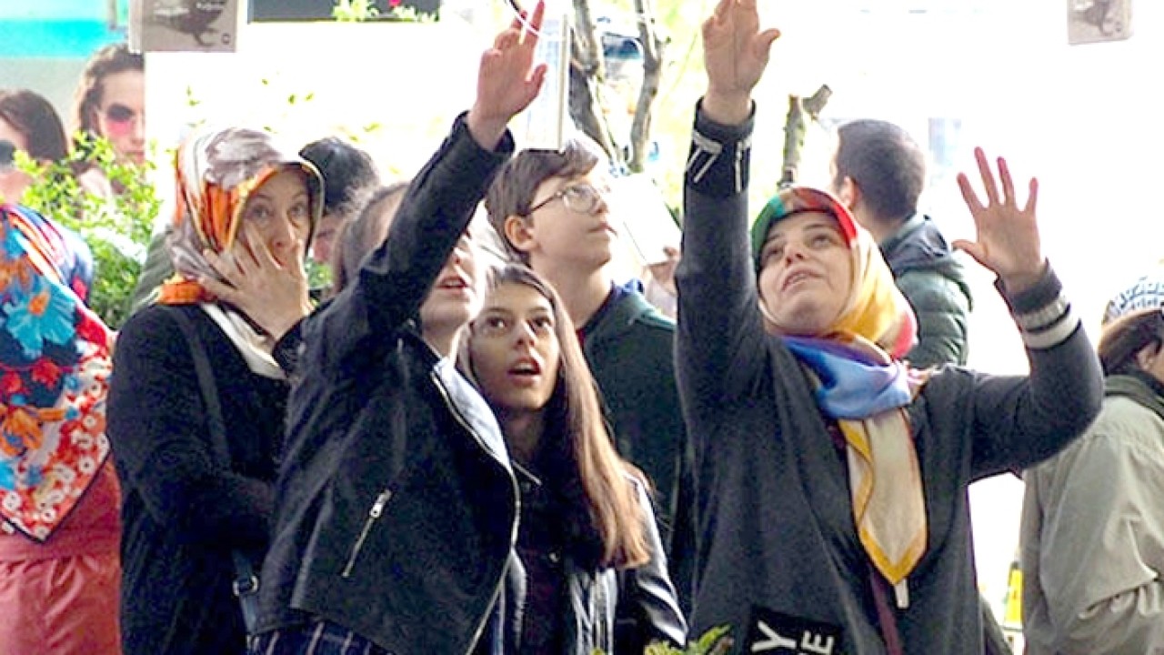 Bazı vatandaşlar, ellerindeki sopalarla yüksekte olan kitapları almaya çalışırken, bazıları birbirlerinden destek alarak ve ağaçlara tırmanarak kitapları elde etmeye çalıştı.