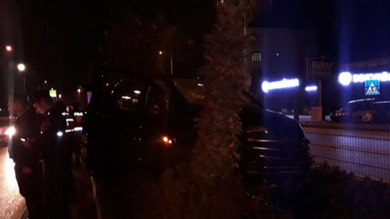 Kontrolden çıkan minibüs refüjdeki palmiye ağacına çarparak durabildi.