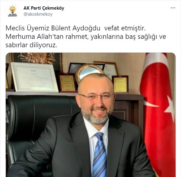 Çekmeköy Belediye Meclis Üyesi Bülent Aydoğdu, koronavirüs nedeniyle hayatını kaybetti. Aydoğdu’ya ne zaman virüs bulaştığı ve tedavi süreciyle ilgili resmi bir açıklama yapılmadı.