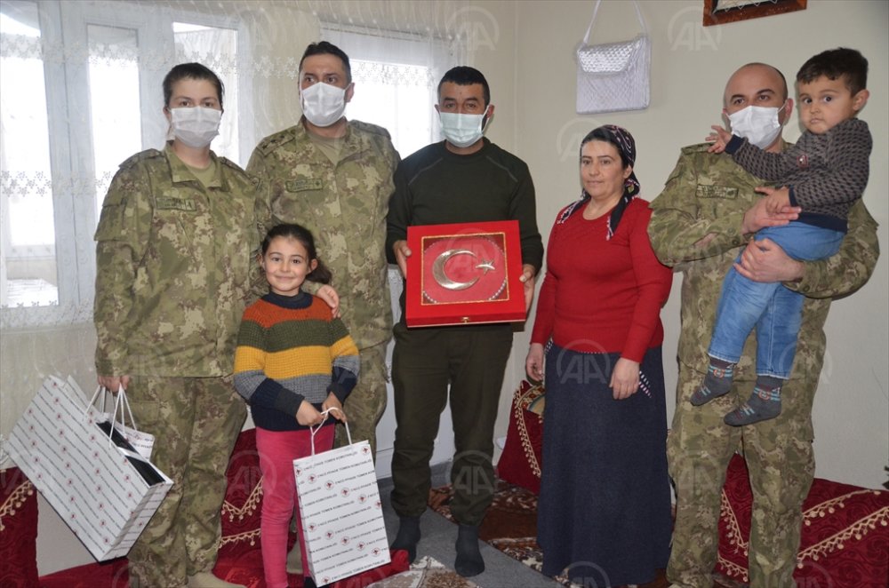 Yüksekova 3. Piyade Tümen Komutanlığında görevli rütbeli askerler, Yeni Mahalle'de yaşayan Karahan ailesini ziyaret etti.