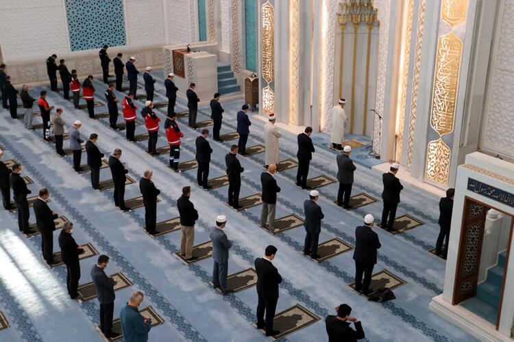 Ramazan Bayramı namazı, koronavirüs tedbirleri kapsamında yalnızca Ankara'da Ahmet Hamdi Akseki Camii'nde kısıtlı sayıda cemaatin katılımıyla kılındı.