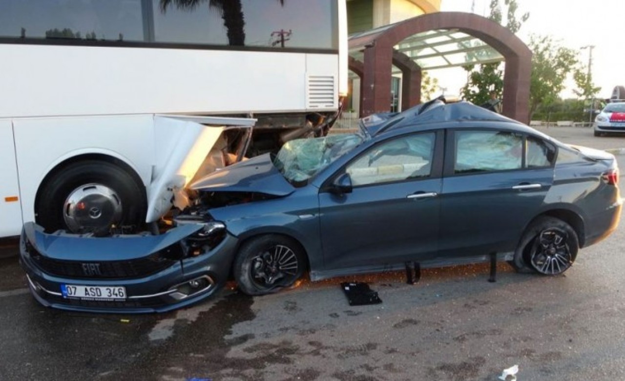 Kaza, Manavgat ilçesine bağlı Side Mahallesi Kemer Bulvarı’nda meydana geldi. Edinilen bilgiye göre, Antalya-Alanya D-400 Karayolu istikametinden gelip Celal Bayar Bulvarı istikametine gitmekte olan Salih Can Ö.’nün kullandığı 07 ASD 346 plakalı otomobil, Side Bulvarı üzerinde Anadolu Hastanesi önünde kavşakta refüje çarptıktan sonra patlak lastikle 40 metre ileride yol kenarında park halindeki 35 HA 9595 plakalı tur otobüsüne sol arka kısmından çarptı.