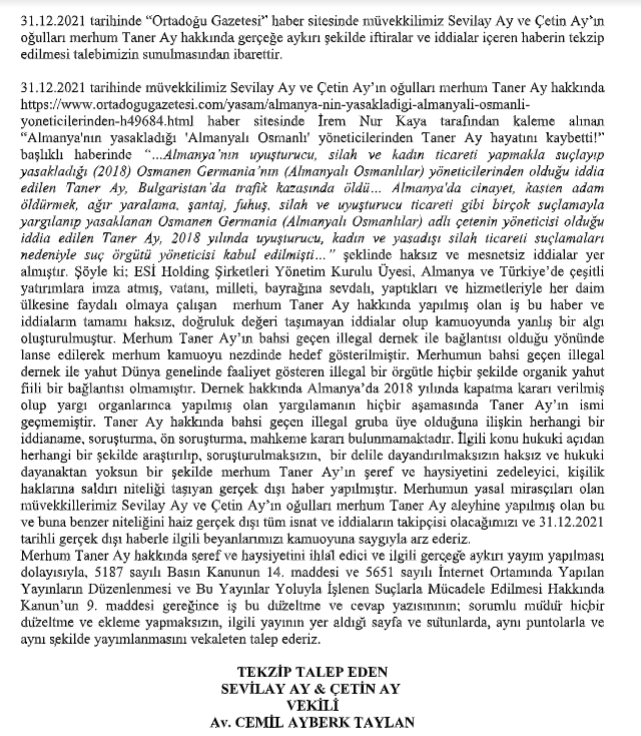 Almanya'da cinayet, kasten adam öldürmek, ağır yaralama, şantaj, fuhuş, silah ve uyuşturucu ticareti gibi birçok suçlamayla yargılanıp yasaklanan Osmanen Germania (Almanyalı Osmanlılar) adlı çetenin yöneticisi olduğu iddia edilen Taner Ay, 2018 yılında uyuşturucu, kadın ve yasadışı silah ticareti suçlamaları nedeniyle suç örgütü yöneticisi kabul edilmişti.