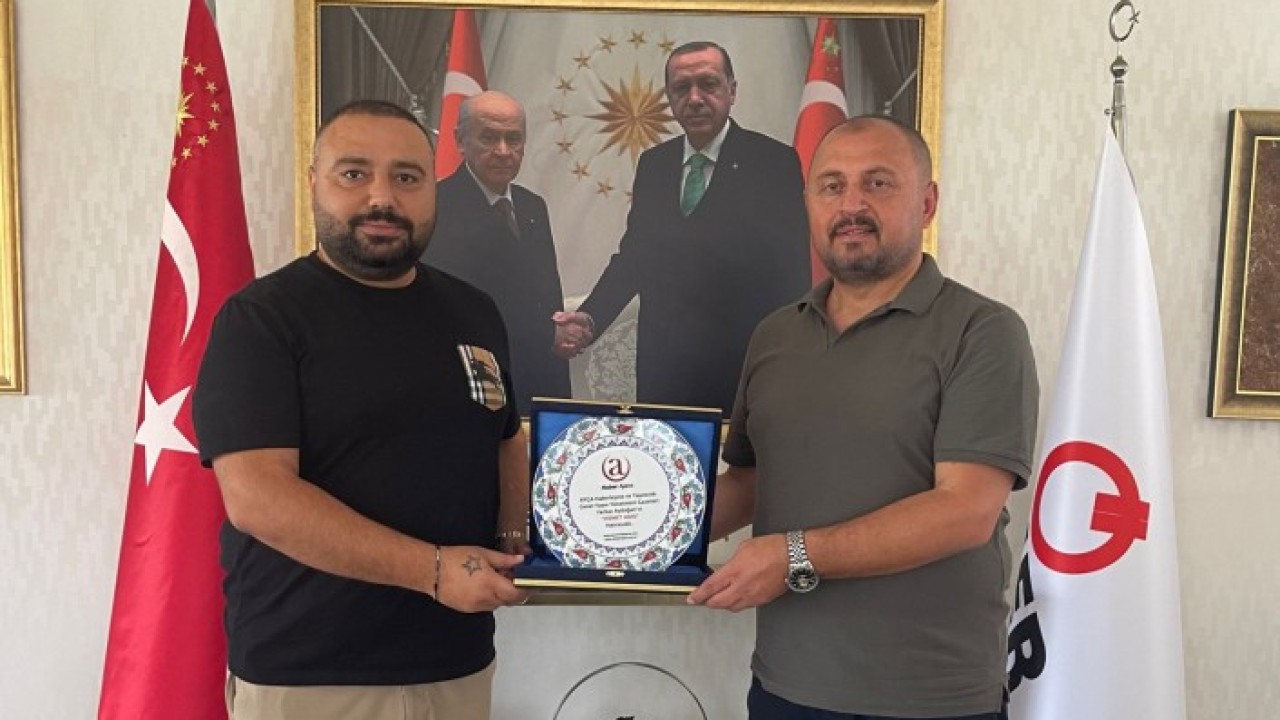 Ankara siyasetinin önemli isimlerinden Milliyetçi Hareket Partisine yıllarca gönül veren Turgut Öner Alaattin Çakıcı’nın baş danışmanı Gazeteci Ferhat Aydoğan ile Ankara’da bir araya geldi.Gazeteci Aydoğan Turgut Öner’i ziyareti esnasında birde ziyaret anısına Onur Plaketi takdim etti.