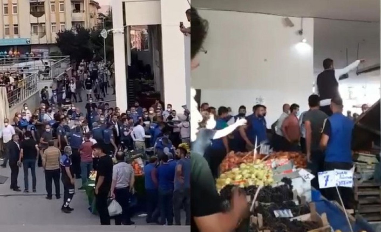 Ankara'da pazar esnafı ile müşteri arasında ezik şeftali tartışması sonucu çıkan kavgada 4 kişi yaralandı.