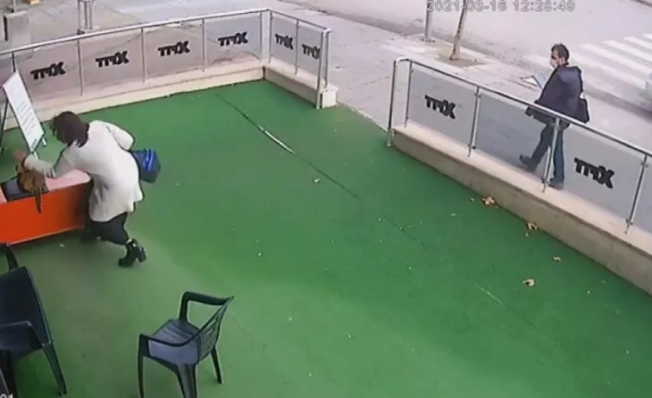 Kadın, korkuyla yerinden fırlayan kedinin yanına tekrar gelerek bu sefer de elindeki çantayı hayvanın üzerine fırlattı. Çantanın kendisine geldiğini fark eden talihsiz kedi, korkulukların arasından kaçtı. Güvenlik kameralarına saniye saniye yansıyan görüntülere çok sayıda sosyal medya kullanıcısı tepki gösterdi.