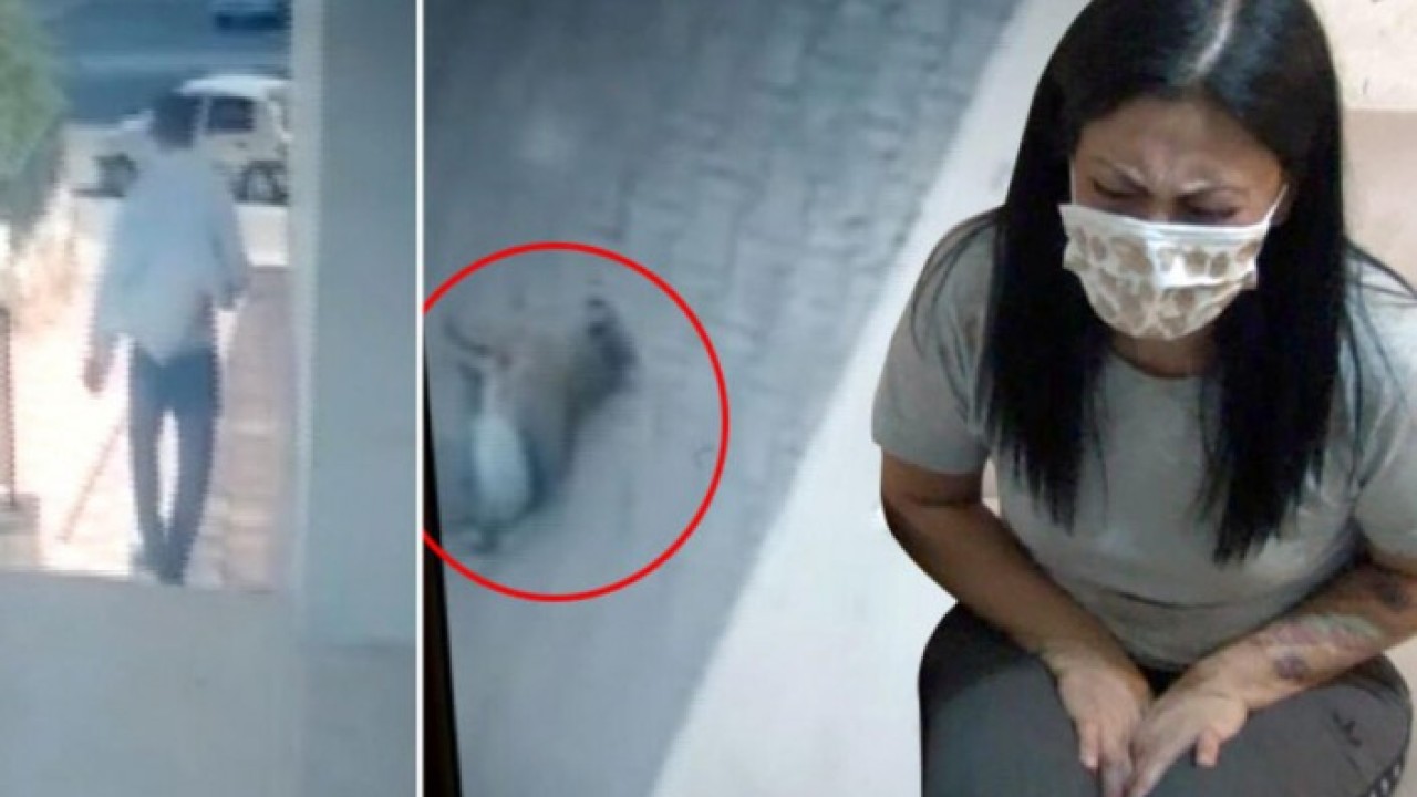 Saldırgan, 6 yaşındaki Pekinez cinsi köpeğini yaklaşık 35 metre yükseklikteki 5. katta bulunan evin balkonundan aşağıya atarak ölümüne sebep oldu. O anlar binanın güvenlik kameralarına an be an yansıdı.