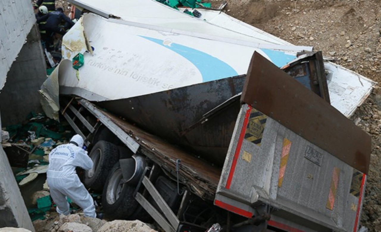 Antalya'nın Akseki ilçesinde kamyonun menfeze devrilmesi sonucu sürücü hayatını kaybetti.