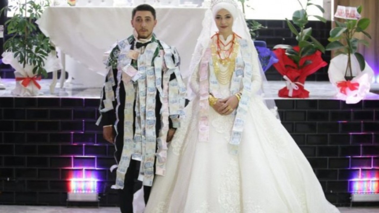 Ceren ve Seyfi Karakaya çiftinin düğün töreni kentteki bir düğün salonunda yapıldı. Pandemi nedeniyle sınırlı sayıda davetlinin kabul edildiği düğünde 40 dakika süren takı töreninde çifte 1, 5 kilogram altın ve 300 bin TL para takıldı.