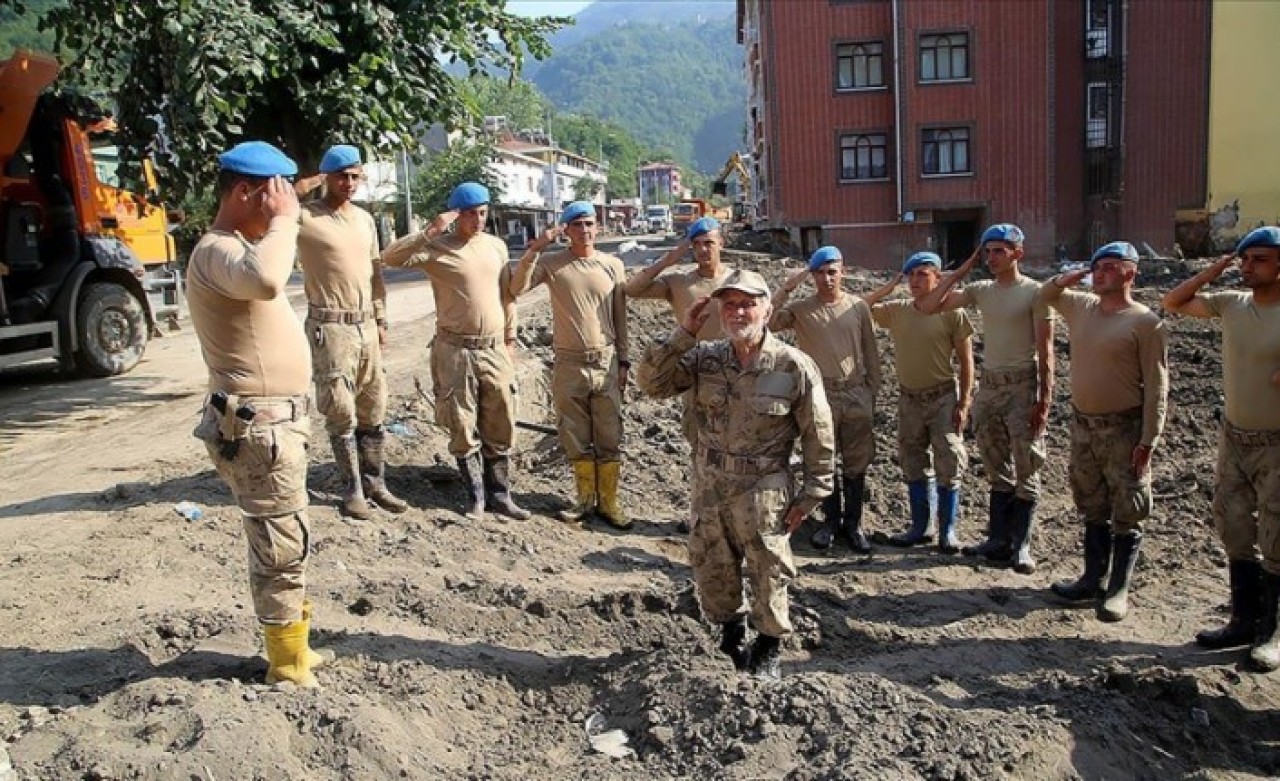 Sel felaketinin yaşandığı Kastamonu'nun Bozkurt ilçesinde yaşayan 79 yaşındaki Coşkun Arol, selin yaralarını sarmak için canla başla çalışan askerlere her sabah üzerindeki üniformayla moral veriyor.