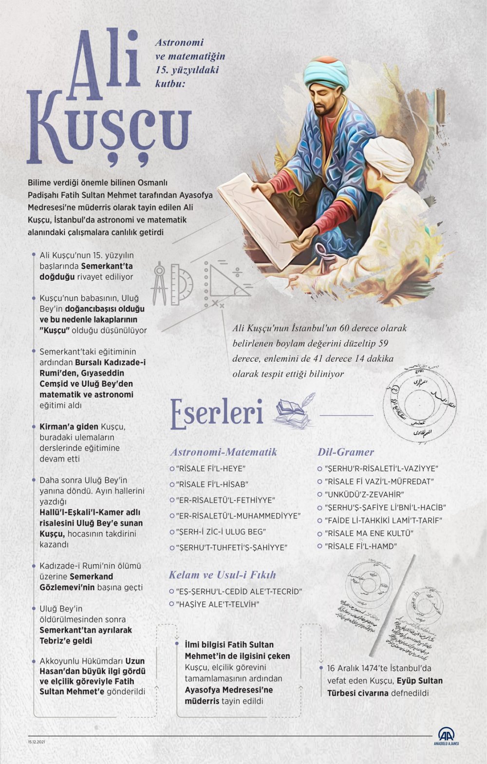 Türk astronom, matematikçi ve dil bilimci Ali Kuşçu 547 yıl önce vefat etti, fakat eserleri, fikirleri ve buluşları günümüzde hala adından sık sık söz ettirmektedir. İşte, Astronom Ali Kuşçu kısaca hayatı ve eserleri!
