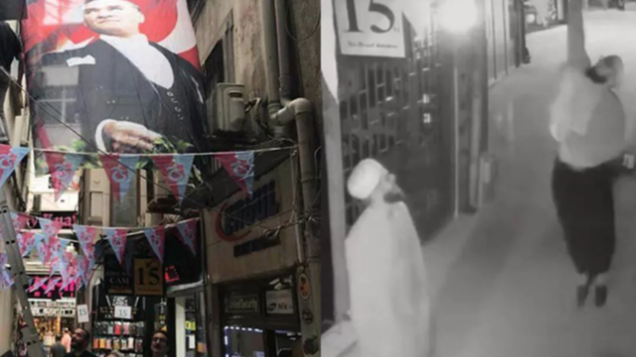 Kemerkaya Mahallesi Cevdet Akçay Sokak'ta cep telefonu aksesuarları satışı yapılan işletmenin sahibi, bir süredir dükkanın önündeki ipte asılı Atatürklü Türk bayrağının yerinde olmadığını fark edip, güvenlik kamerası kayıtlarını izledi.