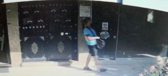 Görüntülerde lükse düşkün, kravatlı cani Mustafa Murat Ayhan'ın askılı çantayı önüne asarak ağzında maskeyle soğukkanlı bir şekilde yürüdüğü görüldü.