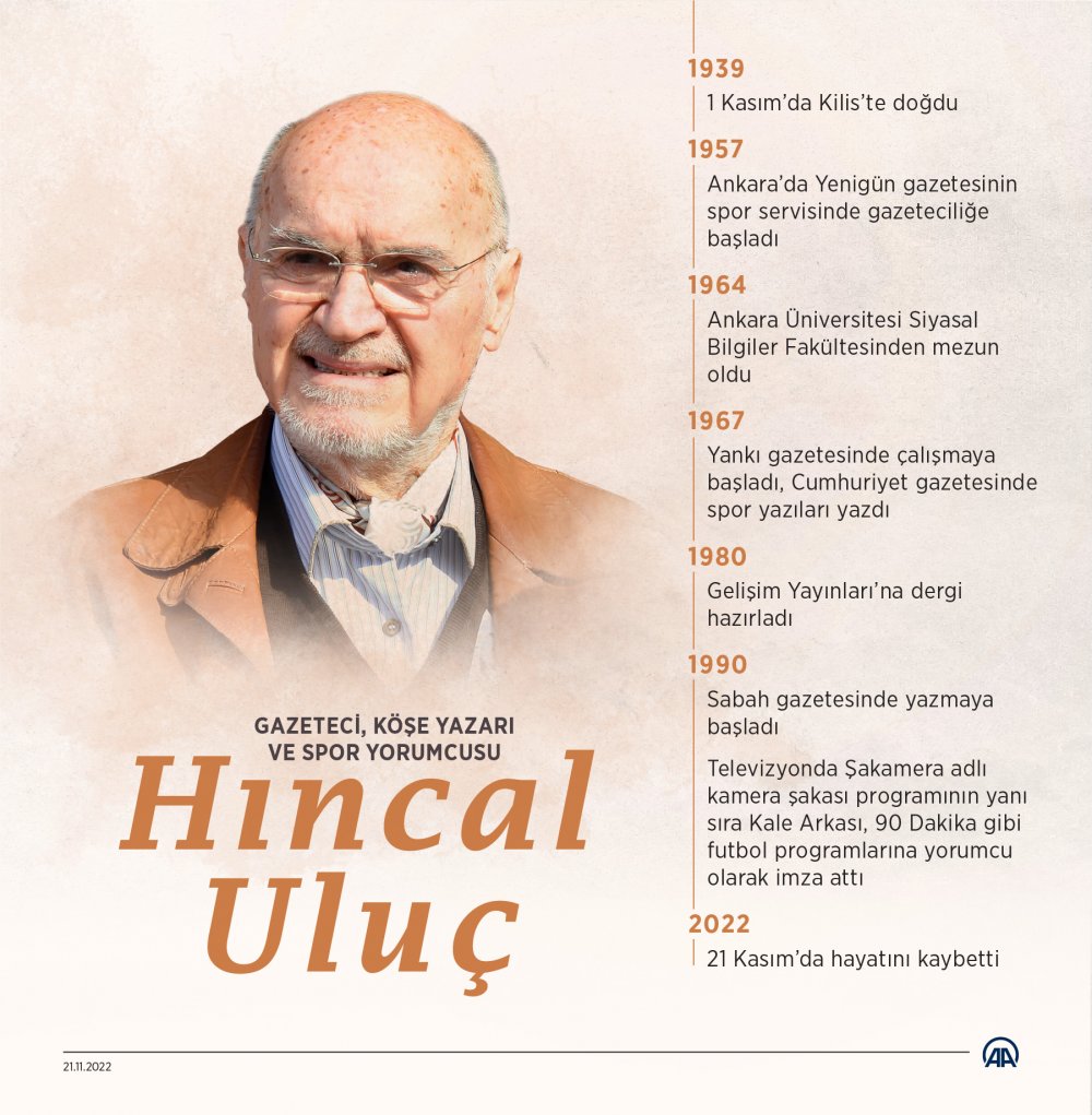 ANKARA (AA) - Gençlik ve Spor Bakanı Mehmet Muharrem Kasapoğlu, tedavi gördüğü hastanede hayatını kaybeden gazeteci, yazar ve spor yorumcusu Hıncal Uluç için taziyede bulundu.