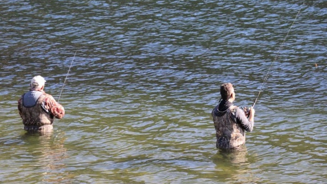 Amatör balıkçılar, suyunun soğuk olması nedeniyle tulumlarını giyerek girdikleri gölde oltayla balık yakalamaya çalıştı. Balıkçılar, saatler süren emeklerinin karşılığını tutukları balıklarla aldı.