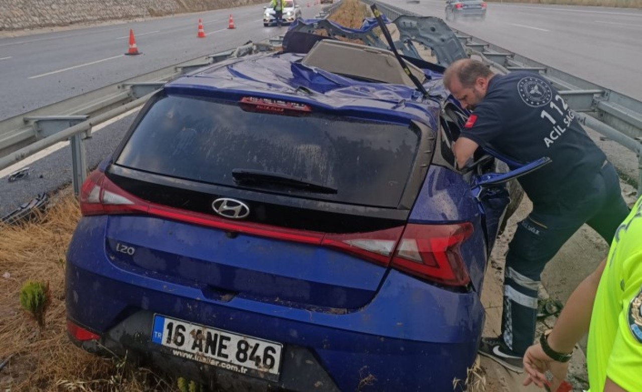 Otoyoldan İzmir yönüne giden Canberk Altın (26) idaresindeki 16 ANE 846 plakalı otomobil, Savaştepe Mecidiye mevkiinde orta refüje çarparak devrildi.