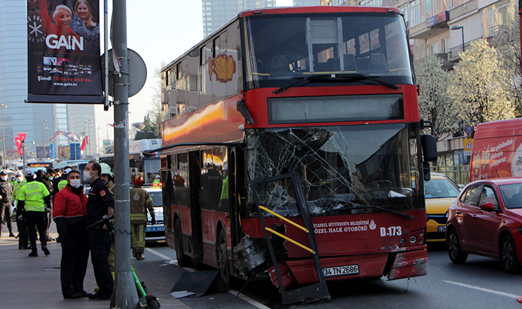 Beşiktaş Balmumcu'da sürücünün direksiyon hakimiyetini kaybettiği çift katlı halk otobüsü tünelde bariyerlere çarptı. Çarpmanın etkisiyle bariyerler otobüse ok gibi saplandı.