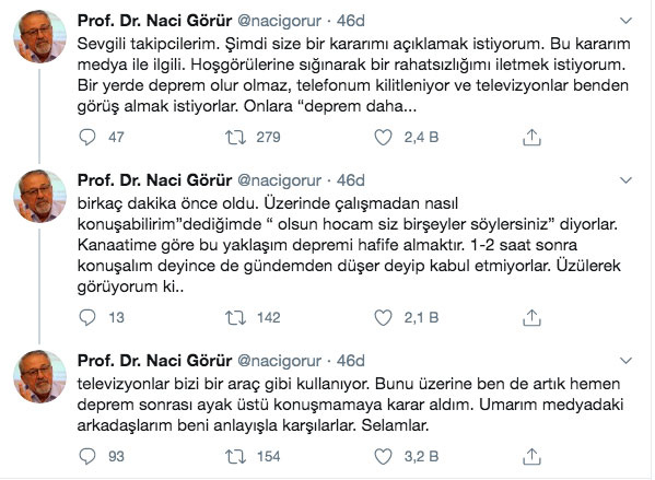 Görür ise Twitter sayfasından aldığı çarpıcı bir kararı takipçileriyle paylaştı. Üzerinde çalışmadan konuya ilişkin bilgi vermenin sağlık olmayacağını vurgulayan Görür, rahatsızlığını böyle dile getirdi: