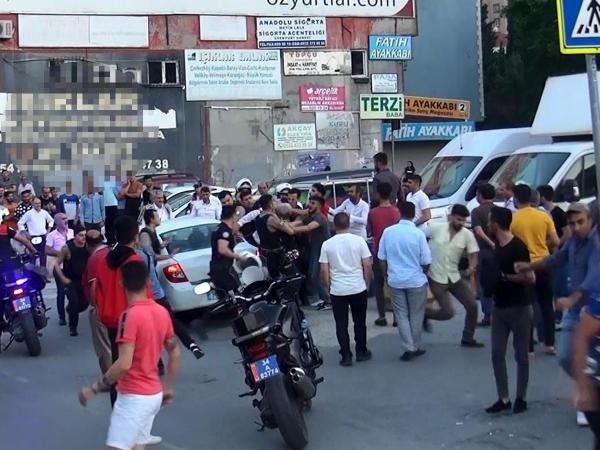 Olay, Esenyurt Merkez Mahallesi Doğan Araslı Bulvarı'nda geçen hafta Çarşamba günü meydana geldi. İddiaya göre, yoldan geçen grup ile akaryakıt istasyonu önünde duran grup arasında 2 kadına laf atma nedeniyle kavga çıktı. Tekme ve yumrukların havada uçuştuğu kavgayı akaryakıt istasyonu çalışanları ayırmak istedi. Ancak çalışanlar da saldırıya uğrayınca onlar da kavgaya dahil oldu. İhbar üzerine olay yerine polis ekipleri geldi. Kalabalık ile polis arasında arbede yaşandı. Polis biber gazı kullandı ve 3 kişiyi gözaltına aldı.