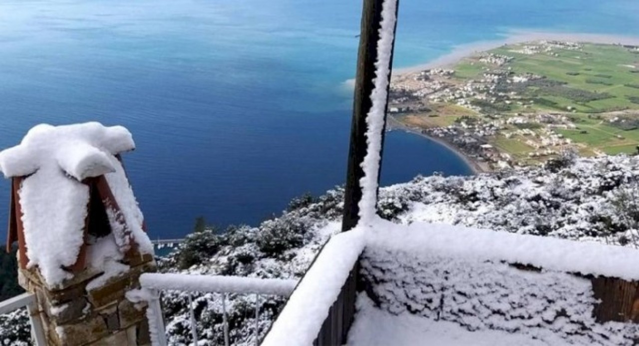 Milas ilçesinde de yıllar sonra kar yağması nedeniyle Labranda Antik Kenti beyaza büründü.