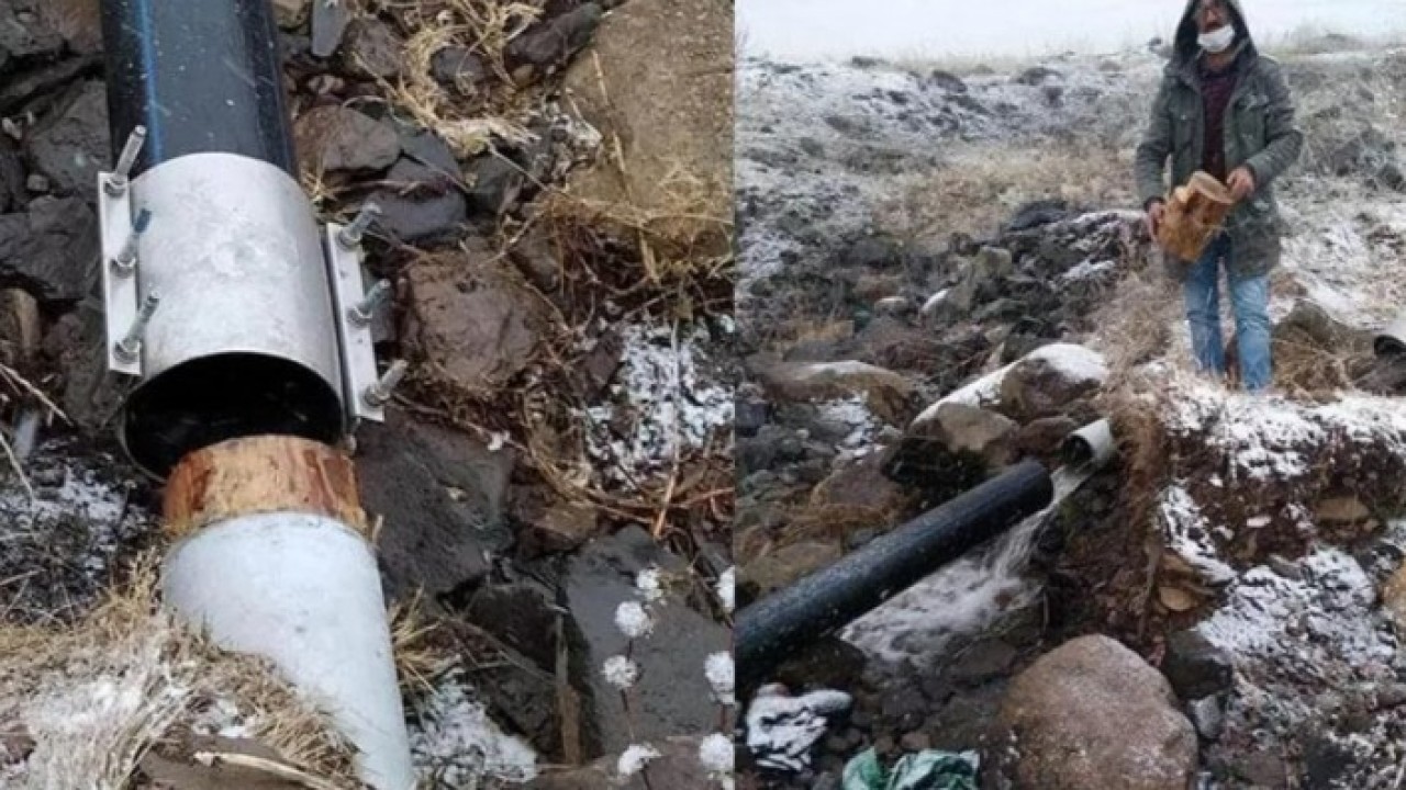 İlçe merkezinde arızayı bulamayan ekipler, Okçu köyü yaylasından geçen borunun birleşim noktasında bulunan kelepçenin sökülüp, yerine ağaç yerleştirildiğini tespit etti.