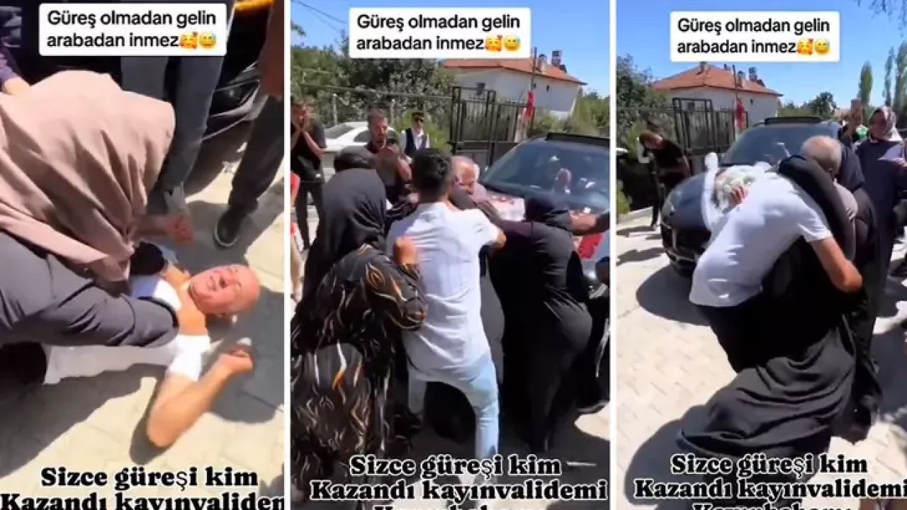 Sosyal medyada paylaşılan bir video, kısa sürede büyük ilgi görerek viral hale geldi. Görüntülerde, bir düğün sırasında gelini arabadan indirmek için kayınvalide ve kayınpederin güreş yaptığı anlar yer alıyor. Videoda, kalabalığın arasında gerçekleşen bu eğlenceli mücadeleye tezahüratlar eşlik ediyor. Paylaşımda, "Güreş olmadan gelin arabadan inmez. Sizce güreşi kim kazandı? Kayınvalide mi, kayınpeder mi?" notu yer aldı.
