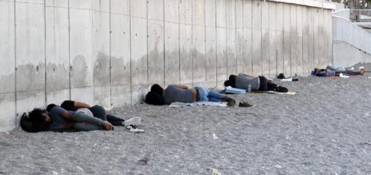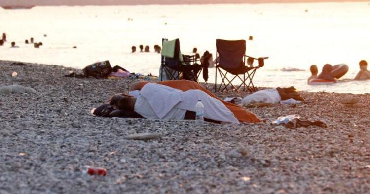 Onlarca kişi kumların üzerinde uyuyordu.