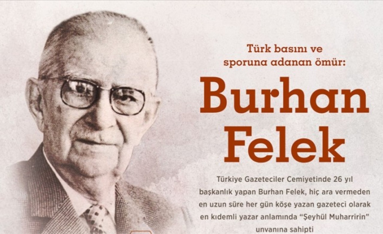 Burhan Felek, foto muhabiri ve spor yazarı olarak başladığı mesleğini, 72 yıl aralıksız sürdürdü. Dünyada hiç ara vermeksizin en uzun süre her gün köşe yazan gazeteci olarak Uluslararası Basın Enstitüsü kanıtıyla en kıdemli yazar anlamında "Şeyhül Muharririn" unvanını alan Burhan Felek, Türkiye Gazeteciler Cemiyetinde ilk olarak Sedat Simavi'nin başkanlığı bırakmasının ardından 1949 yılında başkanlığa getirildi. 1952 yılına kadar bu görevi sürdüren Felek, 1959'da yeniden seçildi ve görevi ölene değin sürdürdü. Felek, Türkiye Gazeteciler Cemiyetinde toplamda 26 yıl başkanlık yaptı.