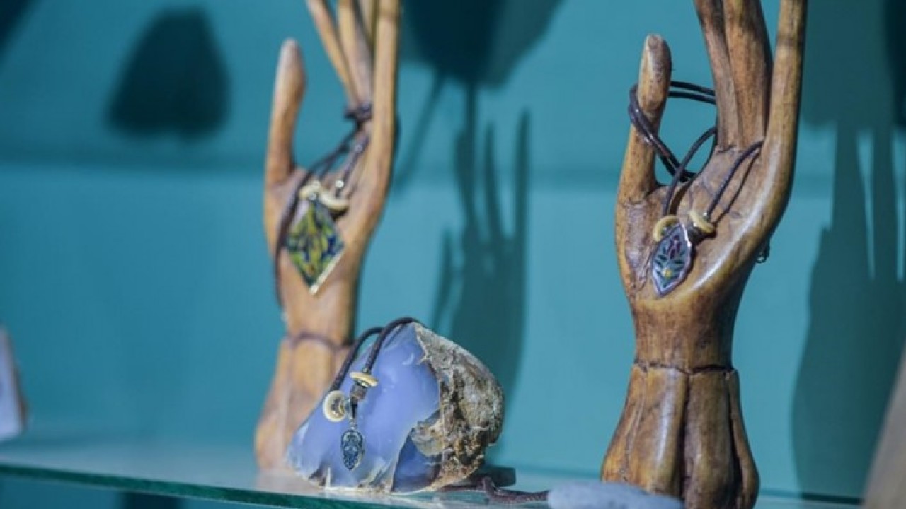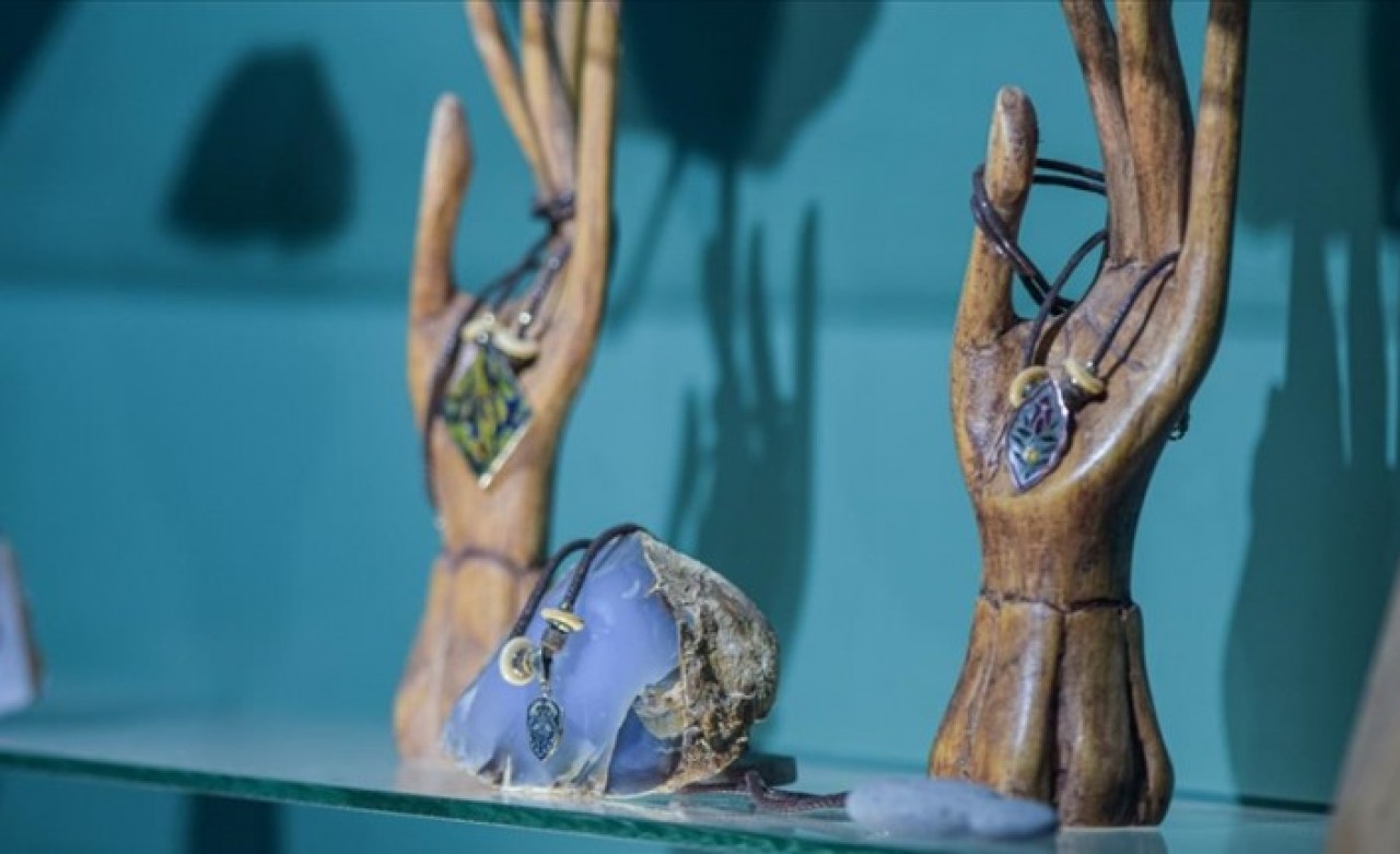Kültür ve Turizm Bakanlığı sanatkarı Karazeybek'in "dua taneleri", "günlük güneşlik", "kınalı kuzu", "bereket hurması" gibi isimlerle kınayla renklendirilmiş kemik, kuru karanfil, boynuz, hurma çekirdeği, sedef ve kuka ağacından hazırladığı takılar, Türk dünyasından kültürel değerleri yansıtıyor.