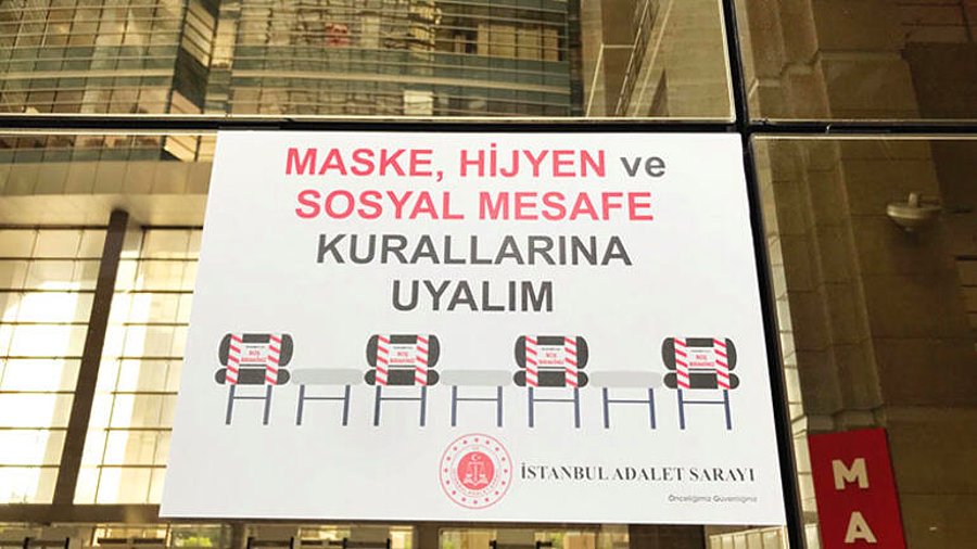 İstanbul Çağlayan Adliyesi'nde, koronavirüs tedbirleri kapsamında maske, sosyal mesafe ve hijyen kurallarını hatırlatıcı afişler hazırlandı. Ancak adliyede sosyal mesafeyi koruma konulu bir afişte, erkek ve kadının çizimleri dikkat çekti ve sosyal medyada kısa sürede birçok kişinin tepkisini topladı.