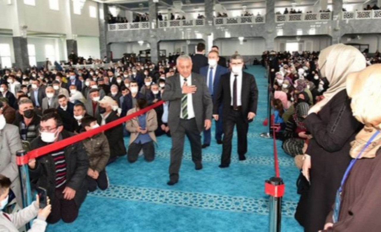 Törenden yansıyan fotoğraflarda, caminin girişinden itibaren kırmızı şerit çekilerek bir protokol yolu oluşturulduğu görüldü. Protokole katılanlar, bu yoldan kuran kursu öğrencisi ve velilerini selamlayarak yürüdü. Öte yandan protokoldekiler için hazırlanan altın sarısına boyanmış varaklı koltuklar da dikkat çekti.