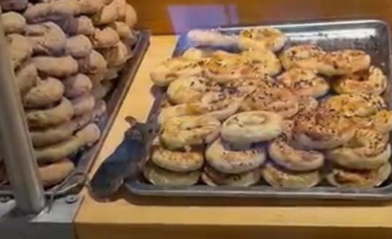 Görüntülerde, kurabiyelerin üzerinde gezinen bir farenin kurabiyeleri yerken çevrede herhangi bir çalışanın bulunmadığı görüldü.