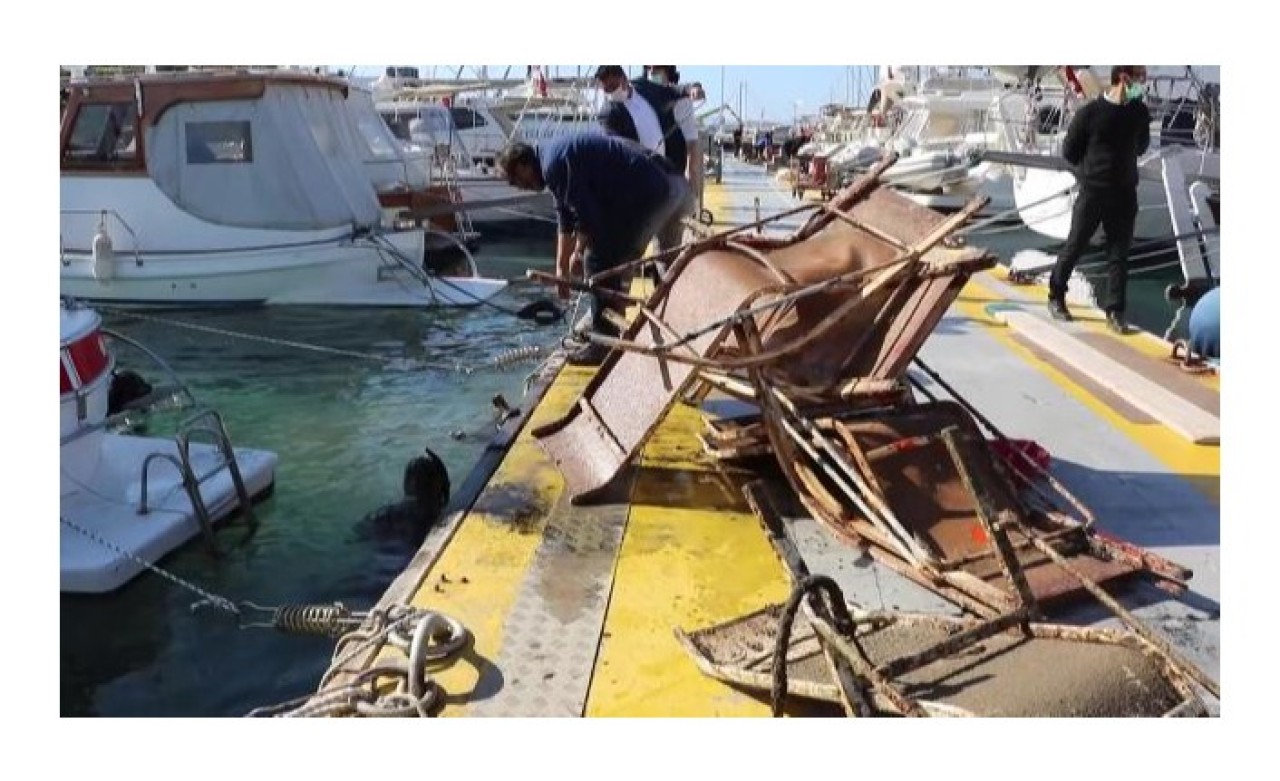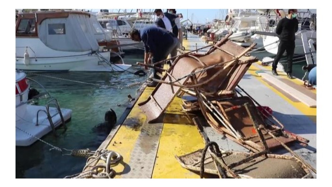 Çalışmalarda, denizden kanepe, alışveriş arabası, tekne motoru, akü, cam şişe, teneke kutu, otomobil lastikleri, cep telefonu, televizyon, küvet, klozet, mangal, çöp konteyneri, tekne parçaları gibi çok sayıda malzeme çıkarılması şaşırtıyor.