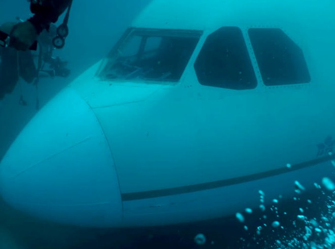Turizme katkı sunmak amacıyla Edirne'deki İbrice Limanı'nın 1 mil açığında dün batırılan Airbus A330 tipi yolcu uçağı, dalgıçlar tarafından deniz dibinde görüntülendi.