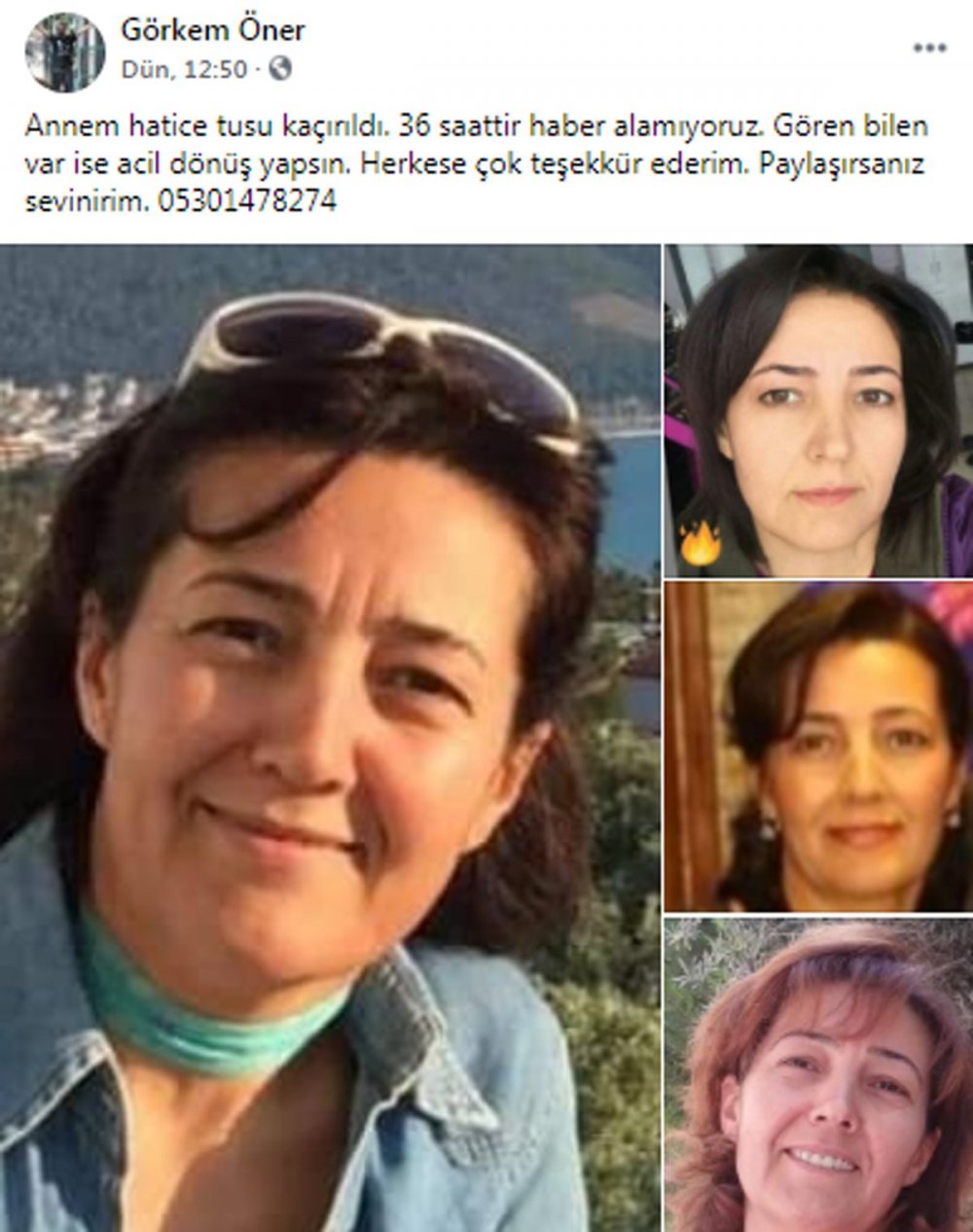 Oğlu Görkem Öner, polise kayıp başvurusu yaparken, annesinin bulunması için sosyal medyadan da çağrıda bulundu.