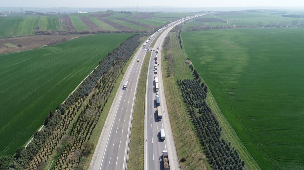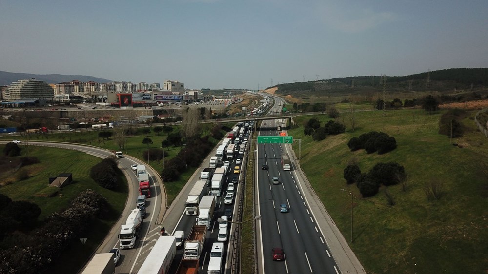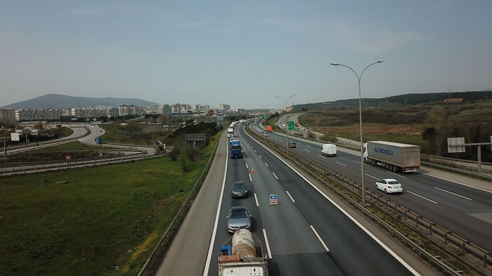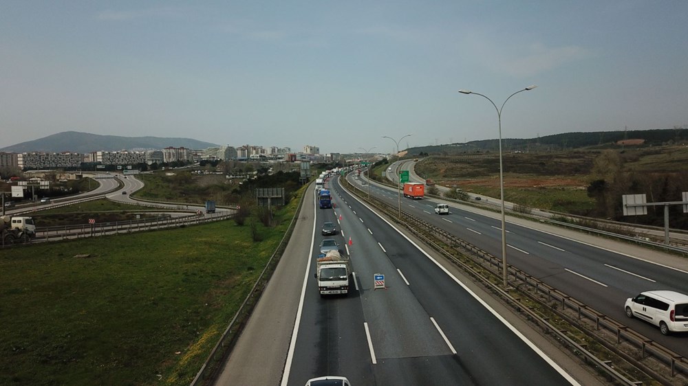 Denetim esnasında araçların tek tek kontrol edilmesi nedeniyle TEM Otoyolu'nda oluşan trafik havadan görüntülendi. Kınalı ve Tuzla'da uzun araç kuyrukları oluştu.