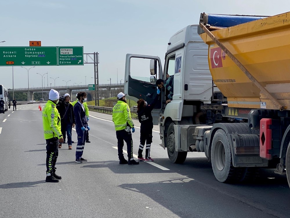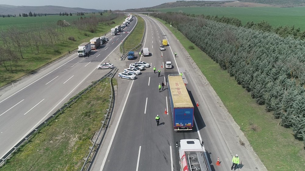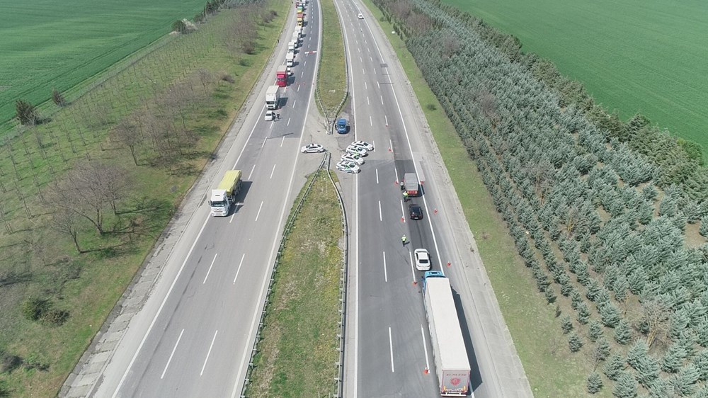 Ayrıca TEM Otoyolu'ndan geçen şehirlerarası otobüslerin izin belgeleri kontrol edilirken; polis ekipleri TIR, kamyonet ve ticari araçların kasalarını, olası bir yolcu taşıma ihtimaline karşı denetledi.